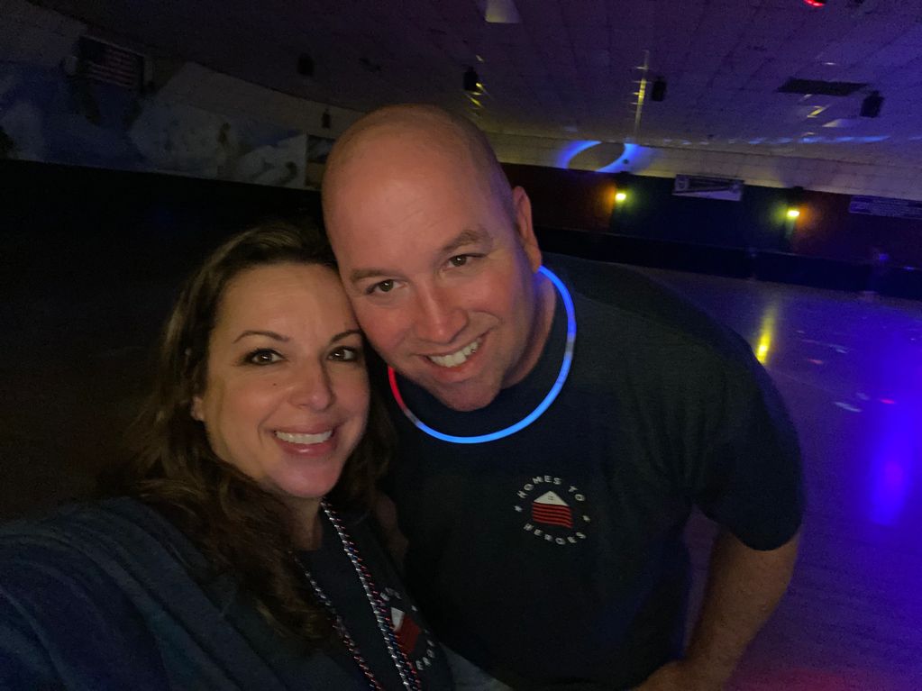 My amazing husband sporting our new navy Homes to Heroes shirts on the roller rink.